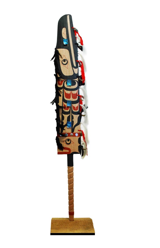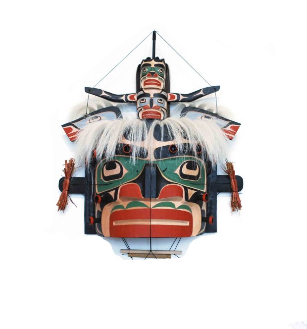 Calvin Hunt’s first solo exhibition was a momentous display of carvings including masks, Power Boards and a small totem pole. Calvin’s inspiration draws on his 47 years of carving and the incredible amount of research and knowledge of traditional culture. Pieces like Sea Monster Transformation mask, Sisiutl, or Tlingit Dance Wand, are unlike anything unlike anything seen before, and contain both an approachability and emotional gravitas.
